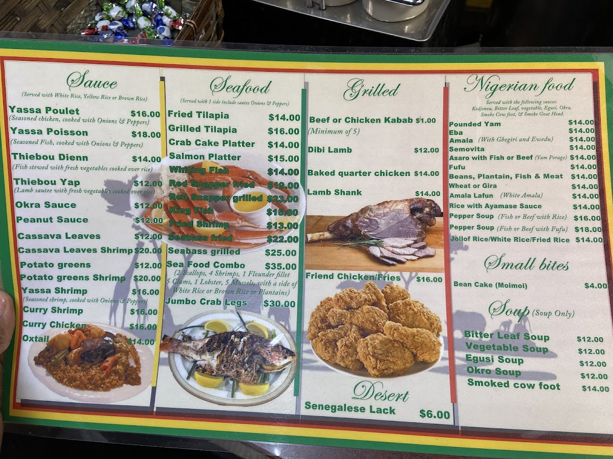 The menu features a delightful array of dishes, from savory Curry Chicken and Grilled Pompano to heartwarming Egusi Soup and Okro Soup. Each dish is crafted with fresh ingredients, leaving customers raving about the remarkable flavors. The Peanut Sauce and Cassava Leaves are must-tries, highlighting the essence of West African cooking.